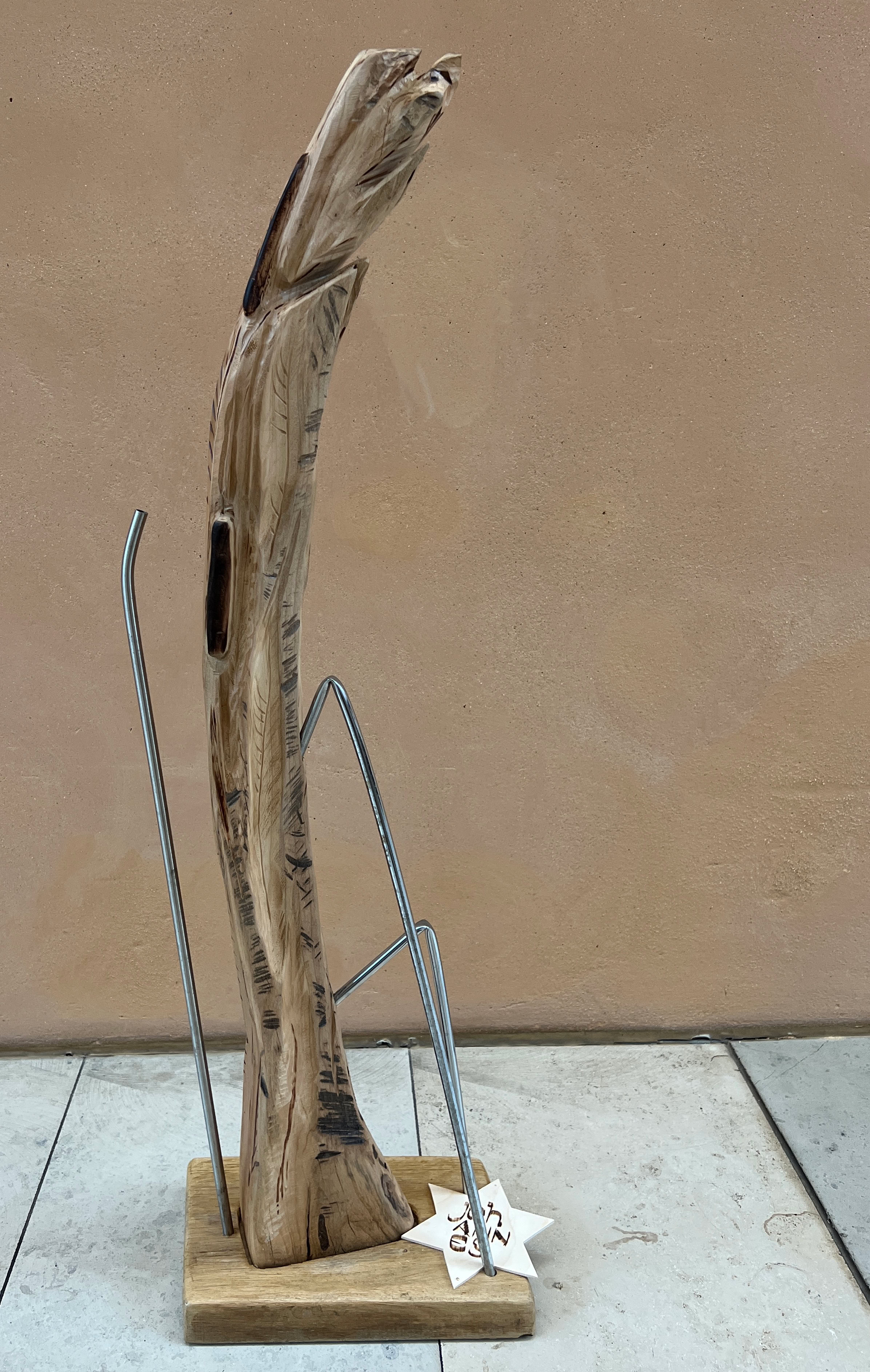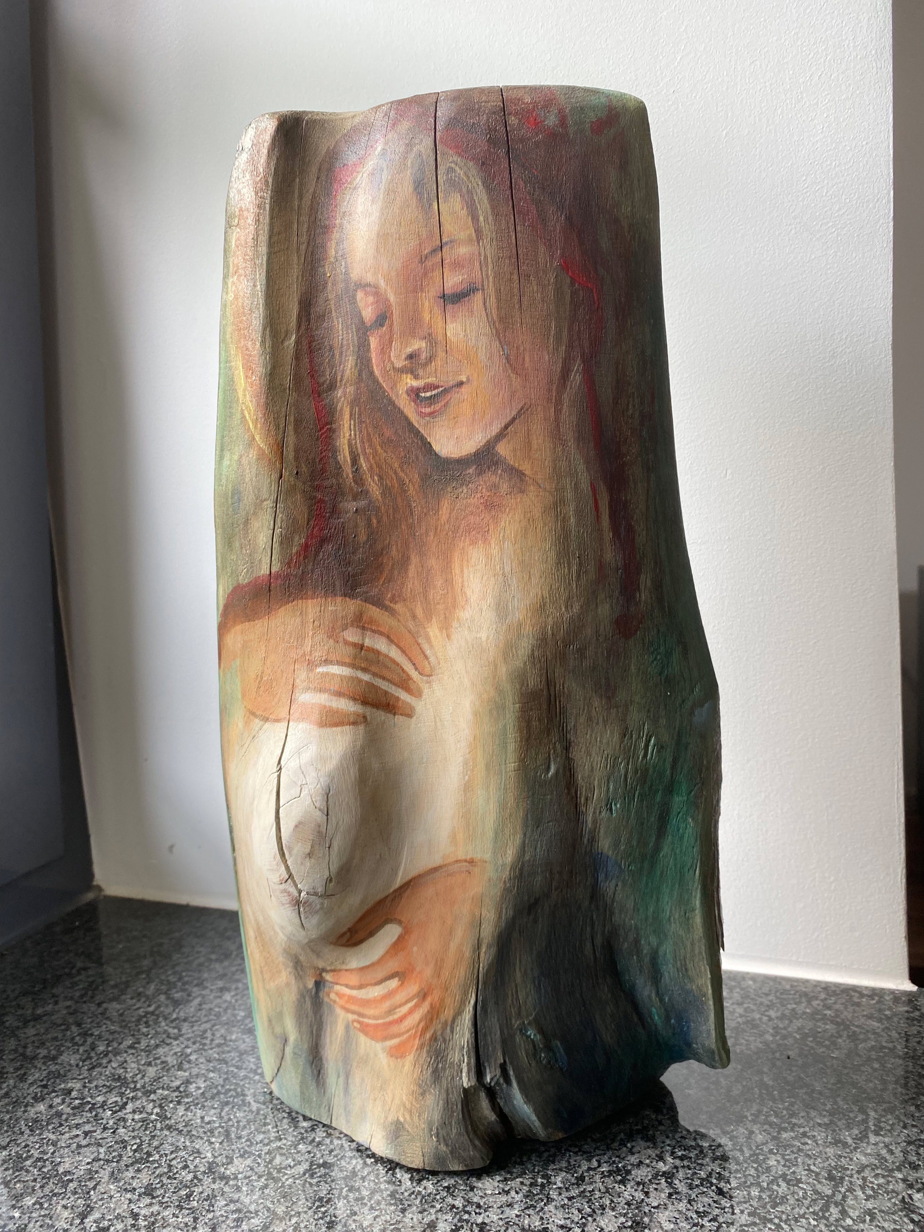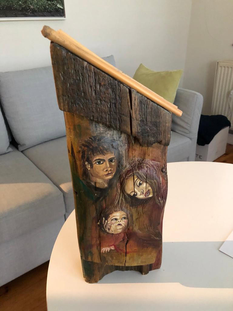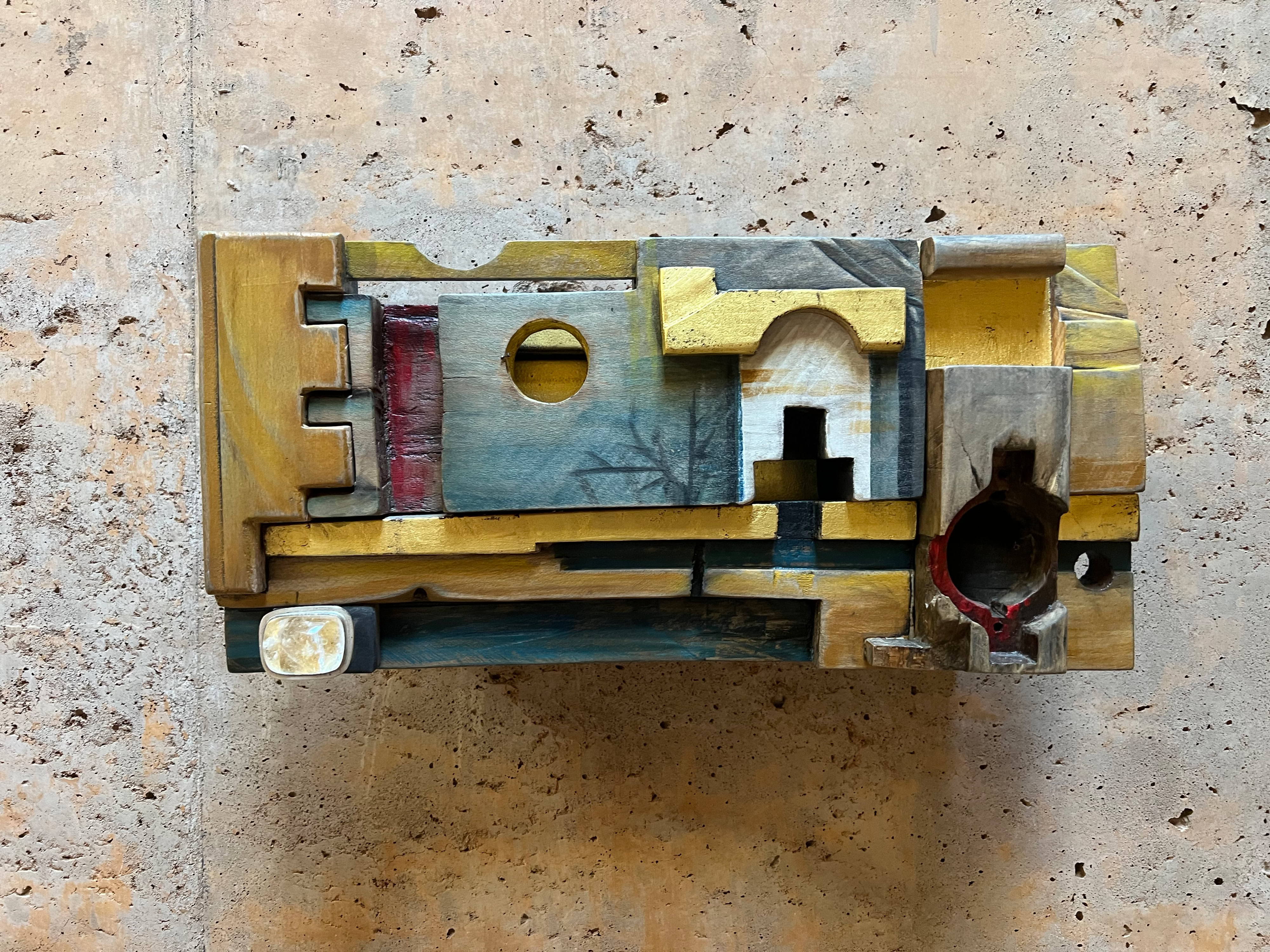 Wood from old Workbench, acrylic, gold, rock crystal,