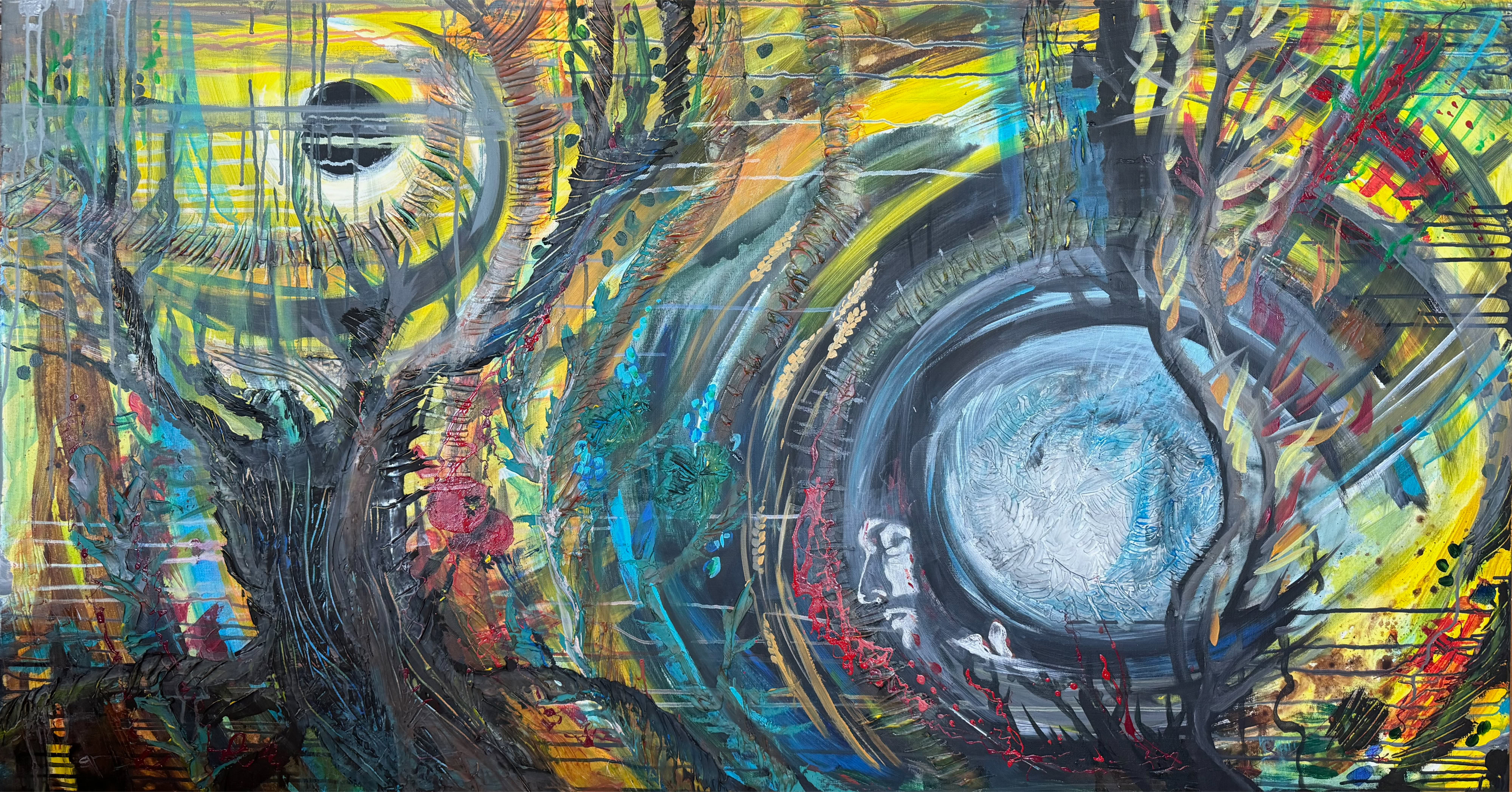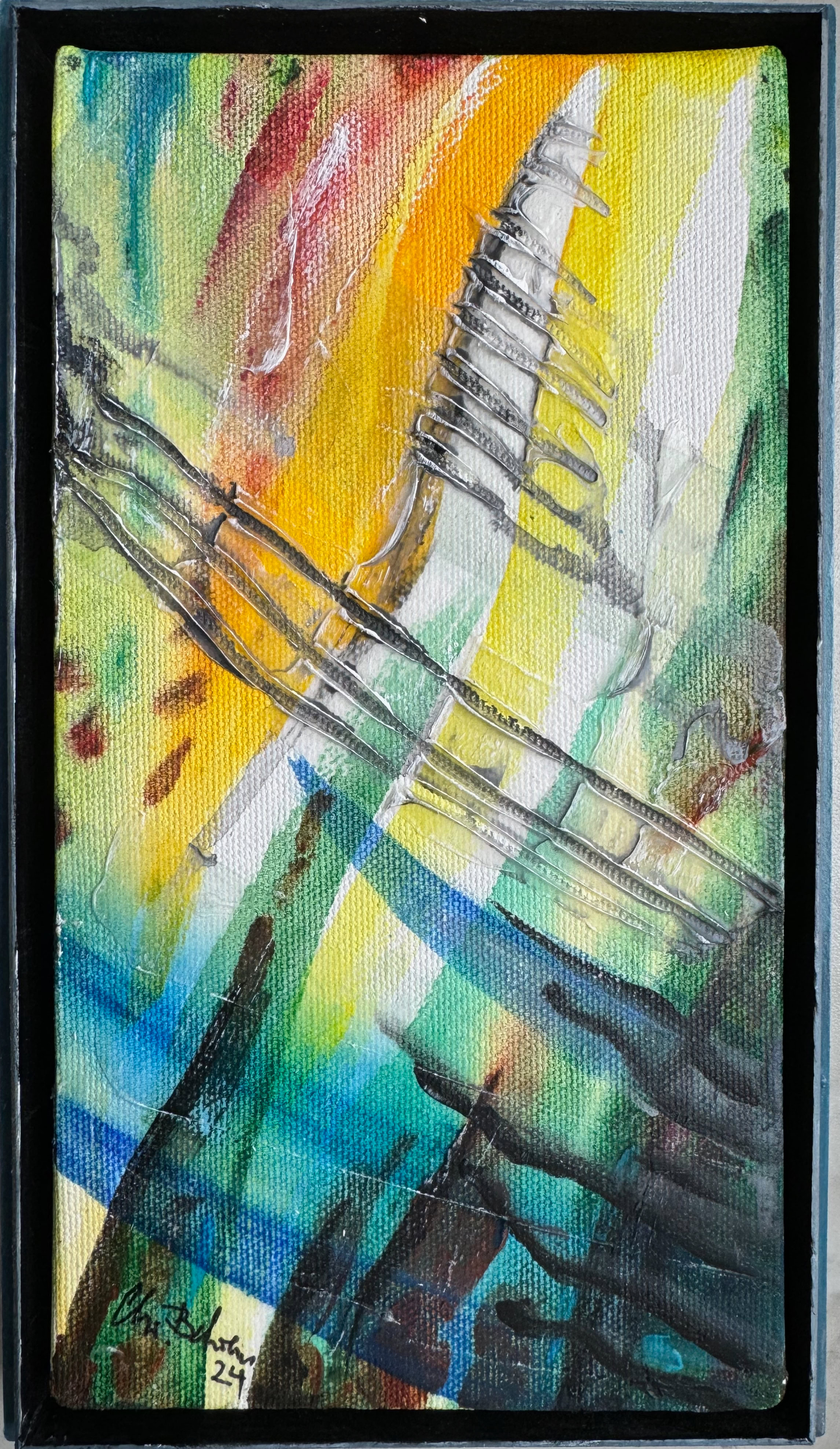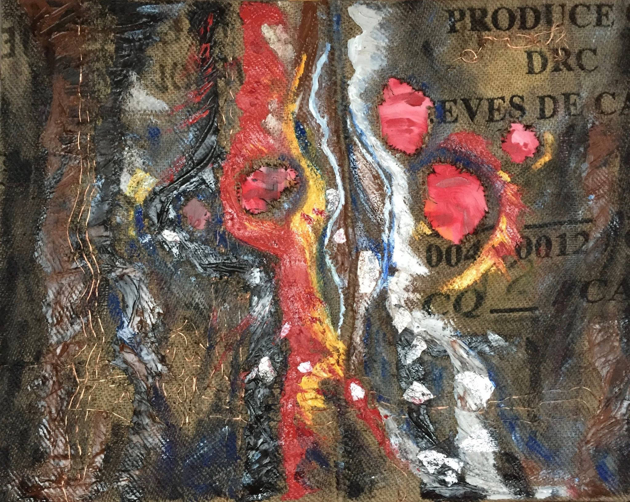 Wood from old Workbench, acrylic, gold, rock crystal,