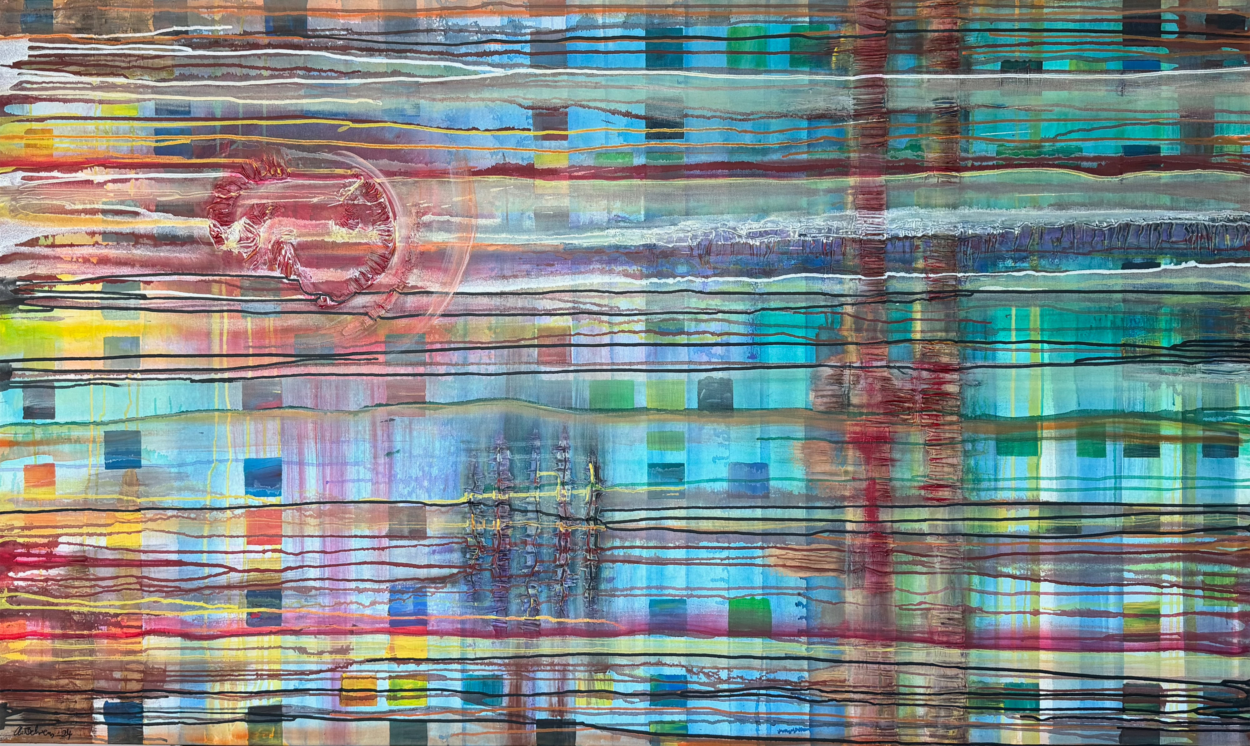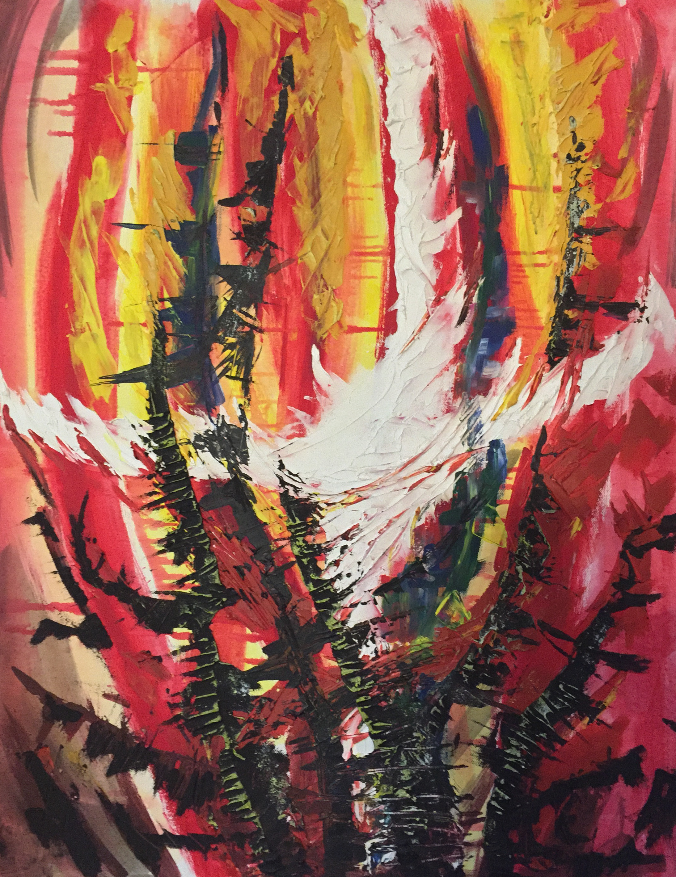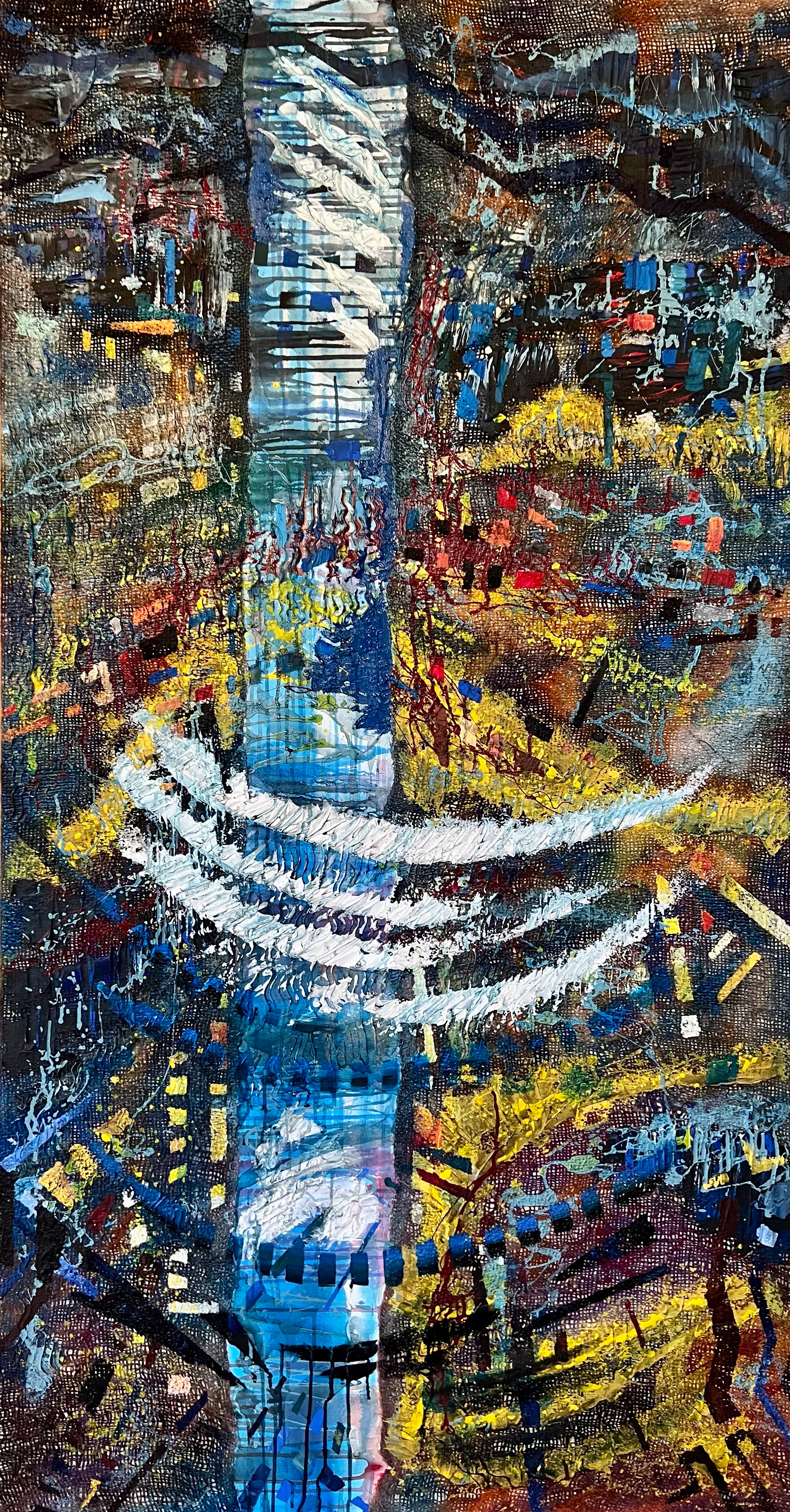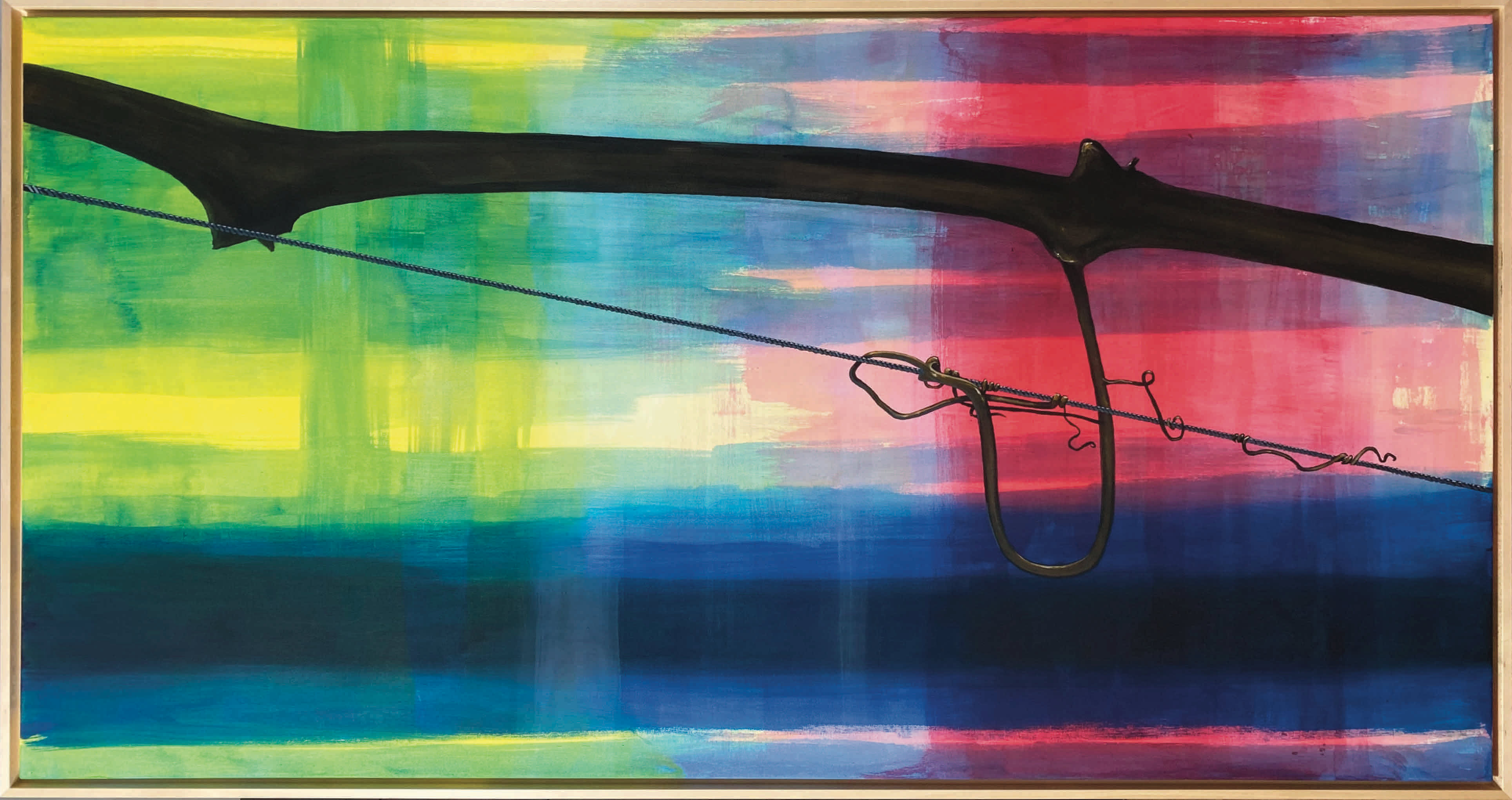 Wood from old Workbench, acrylic, gold, rock crystal,