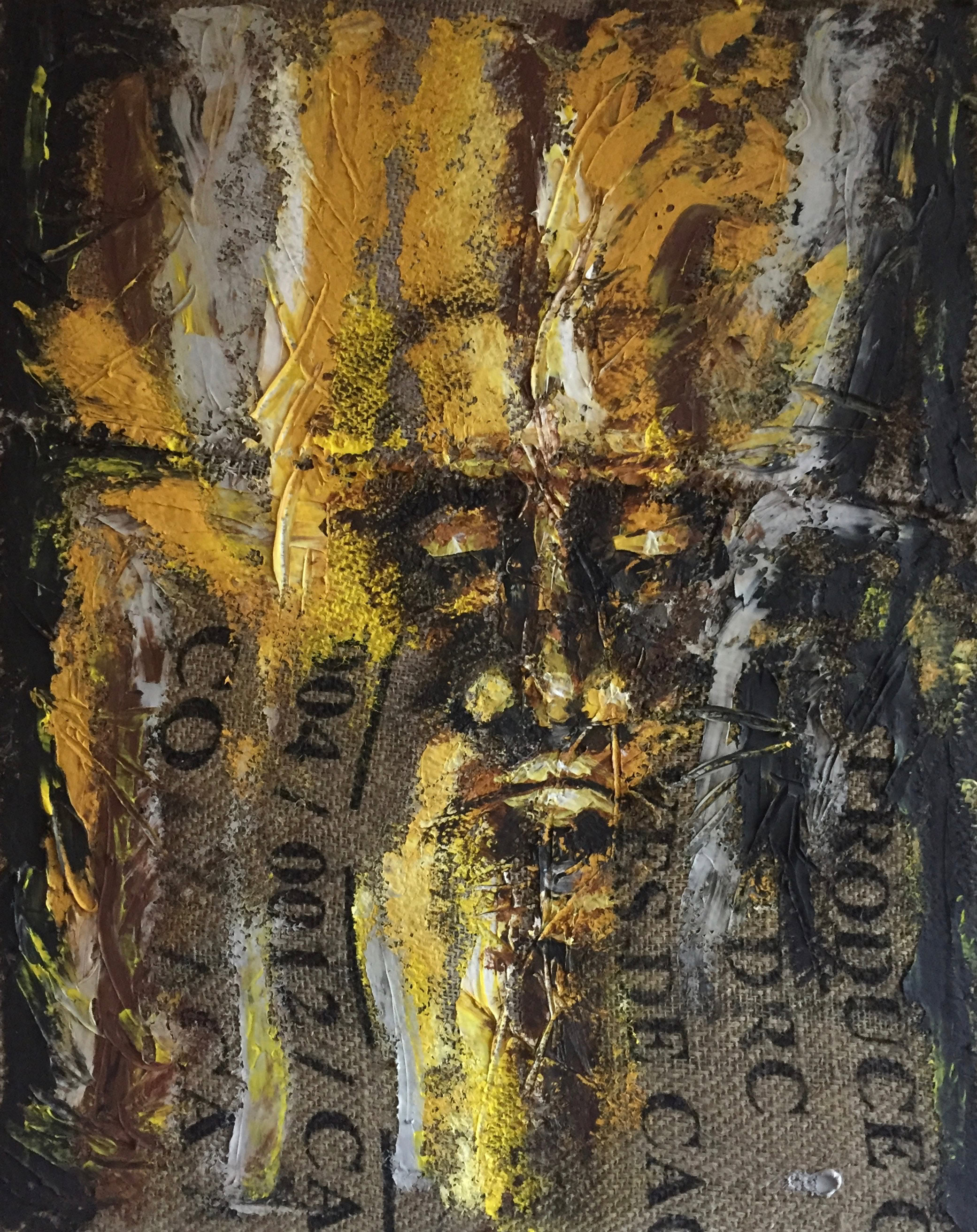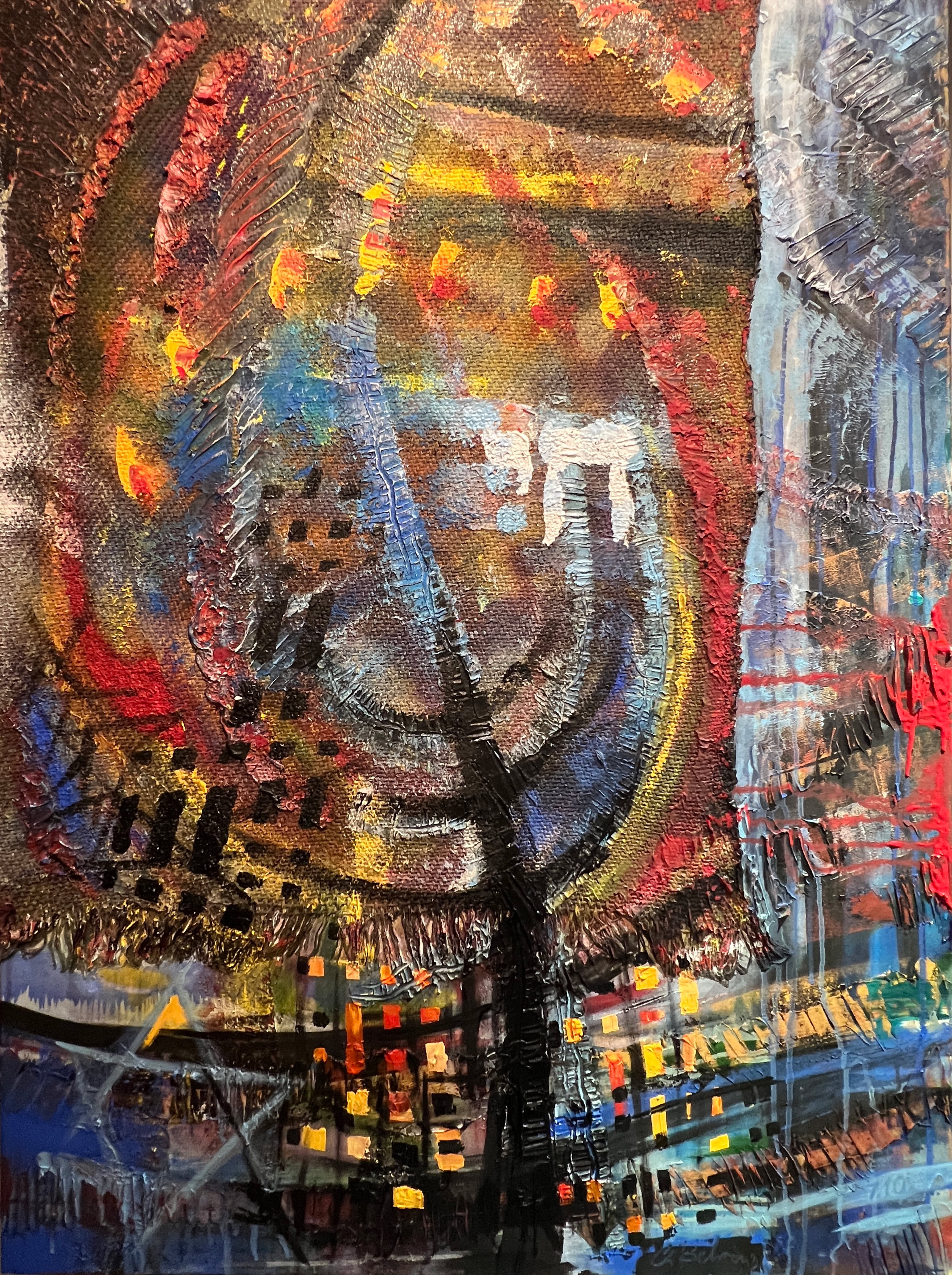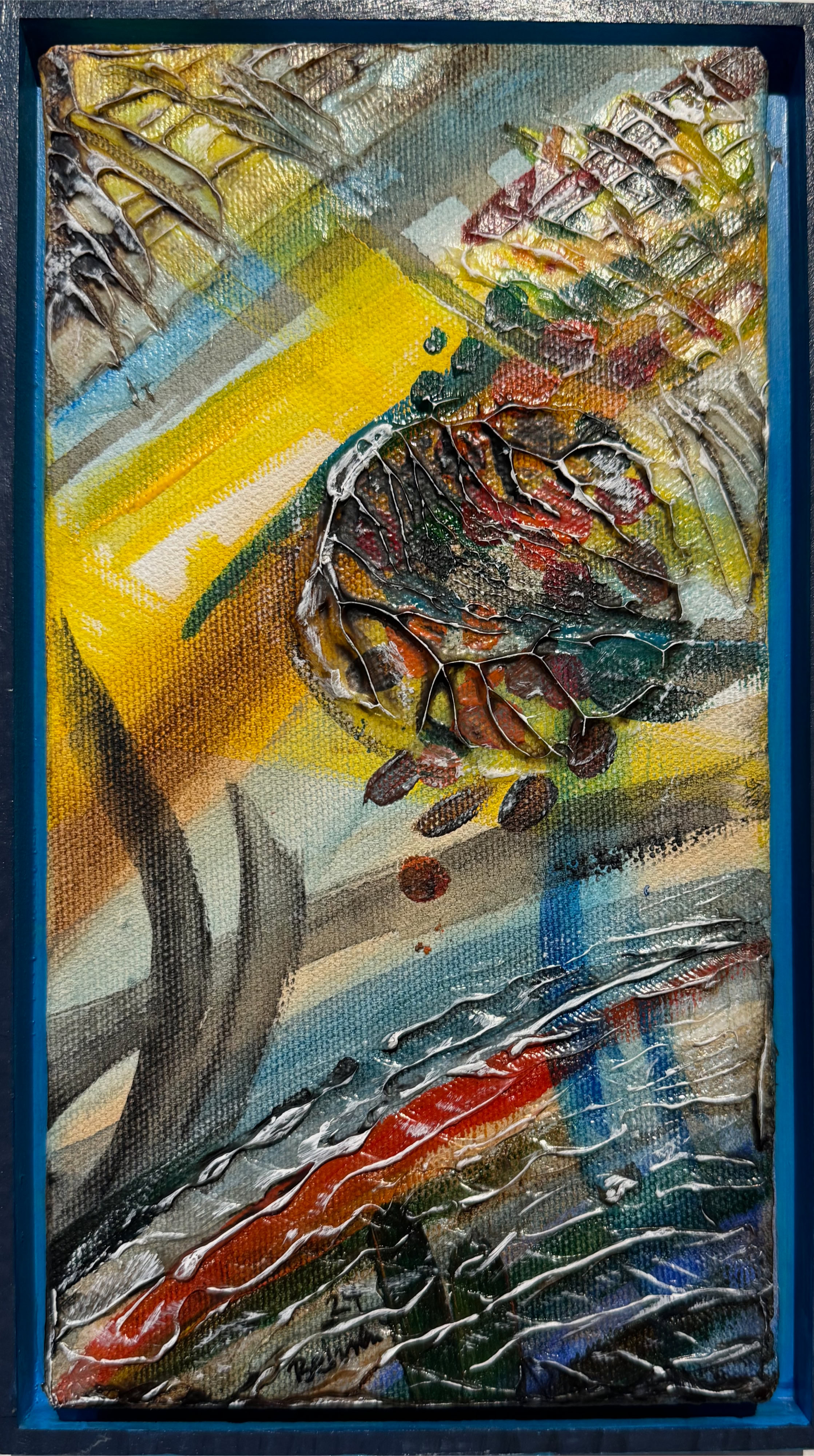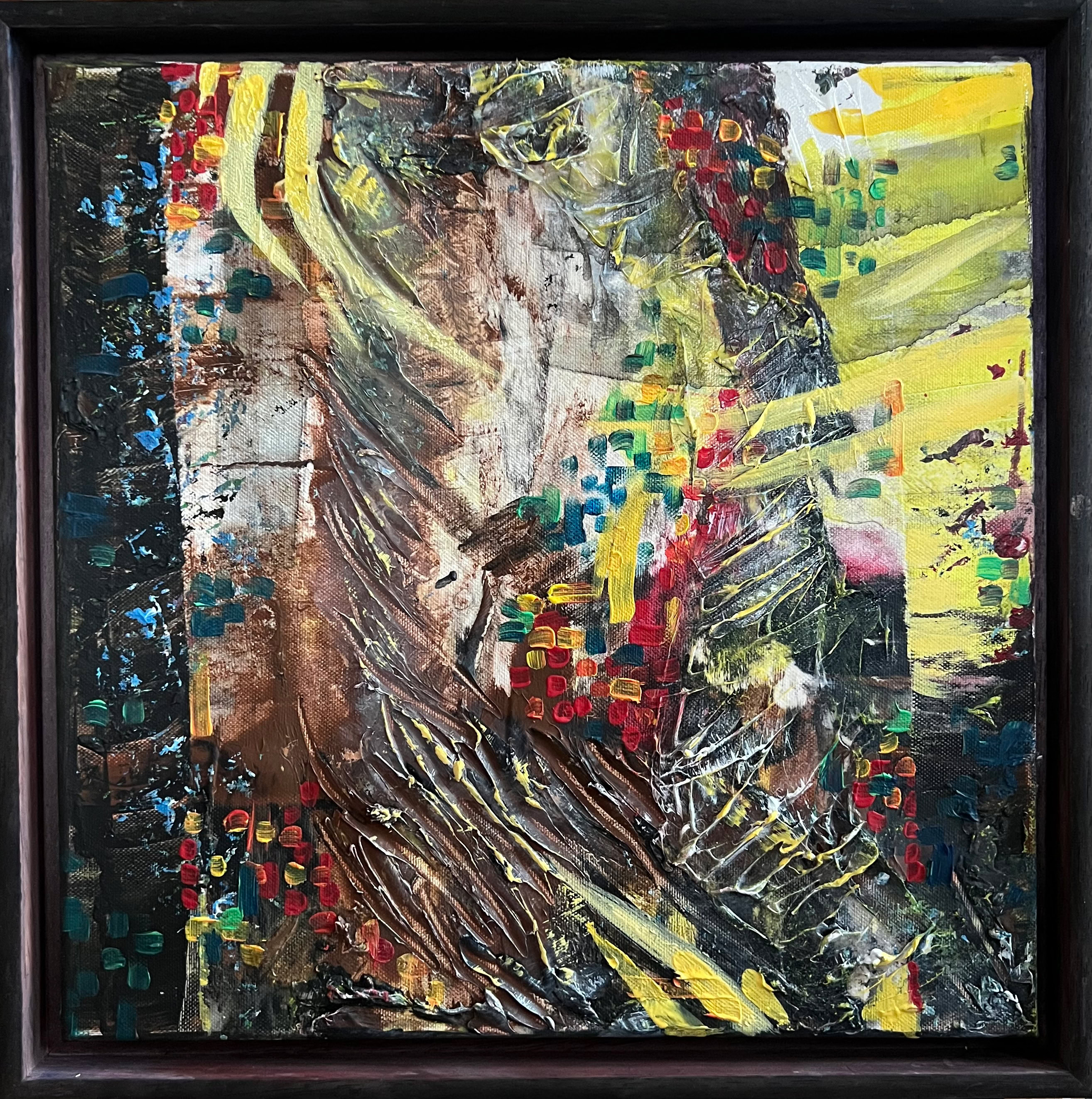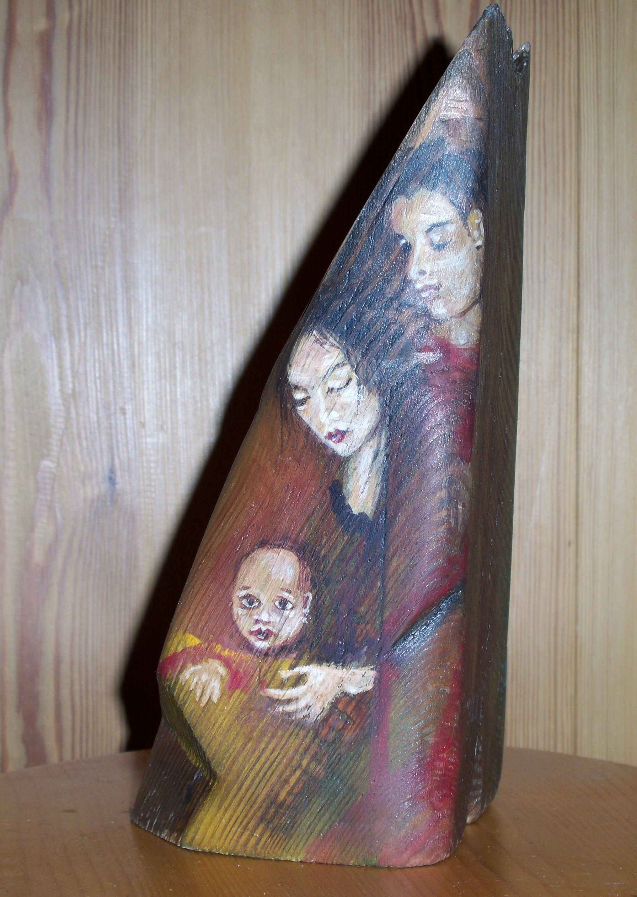 Wood from old Workbench, acrylic, gold, rock crystal,