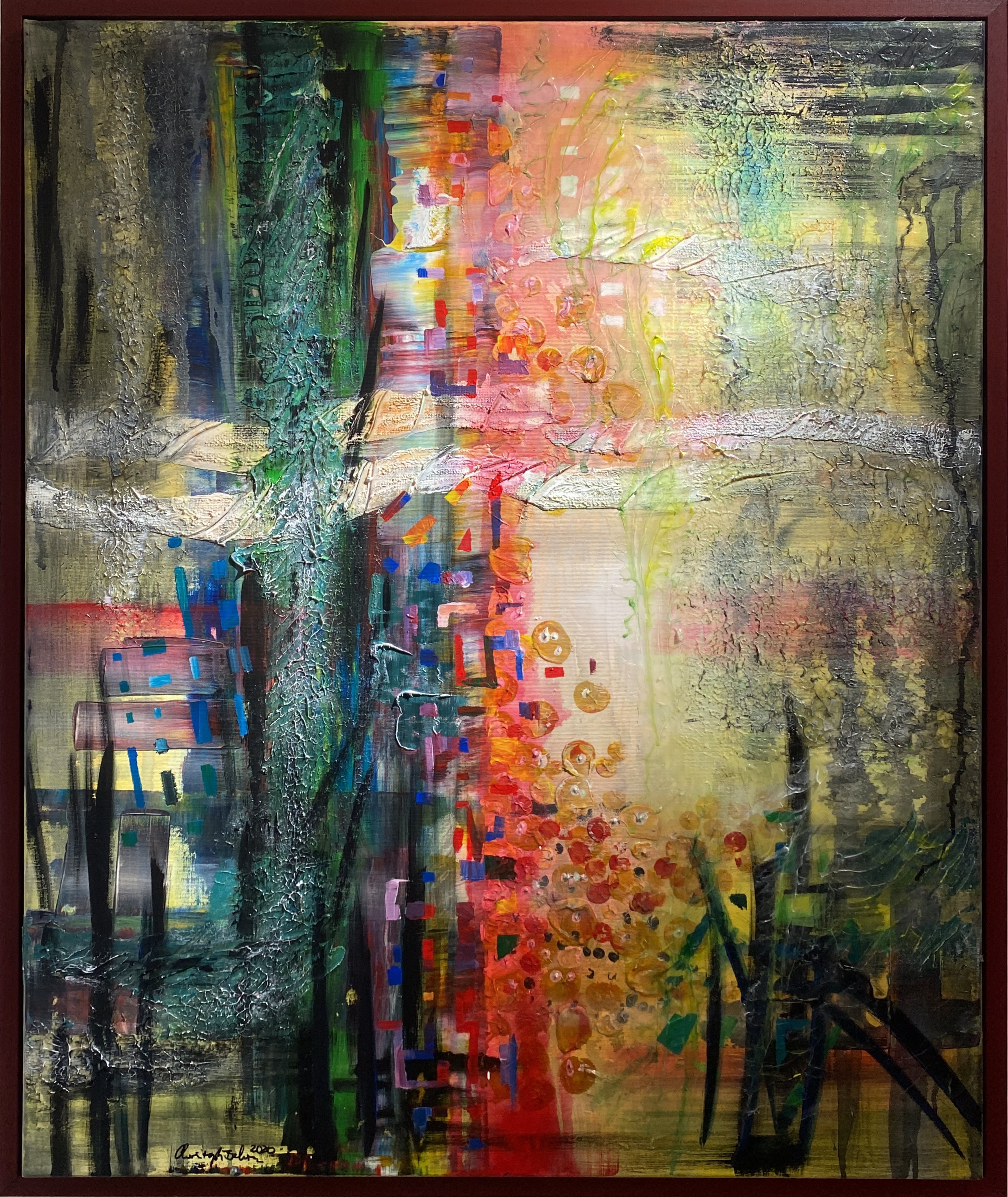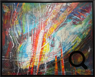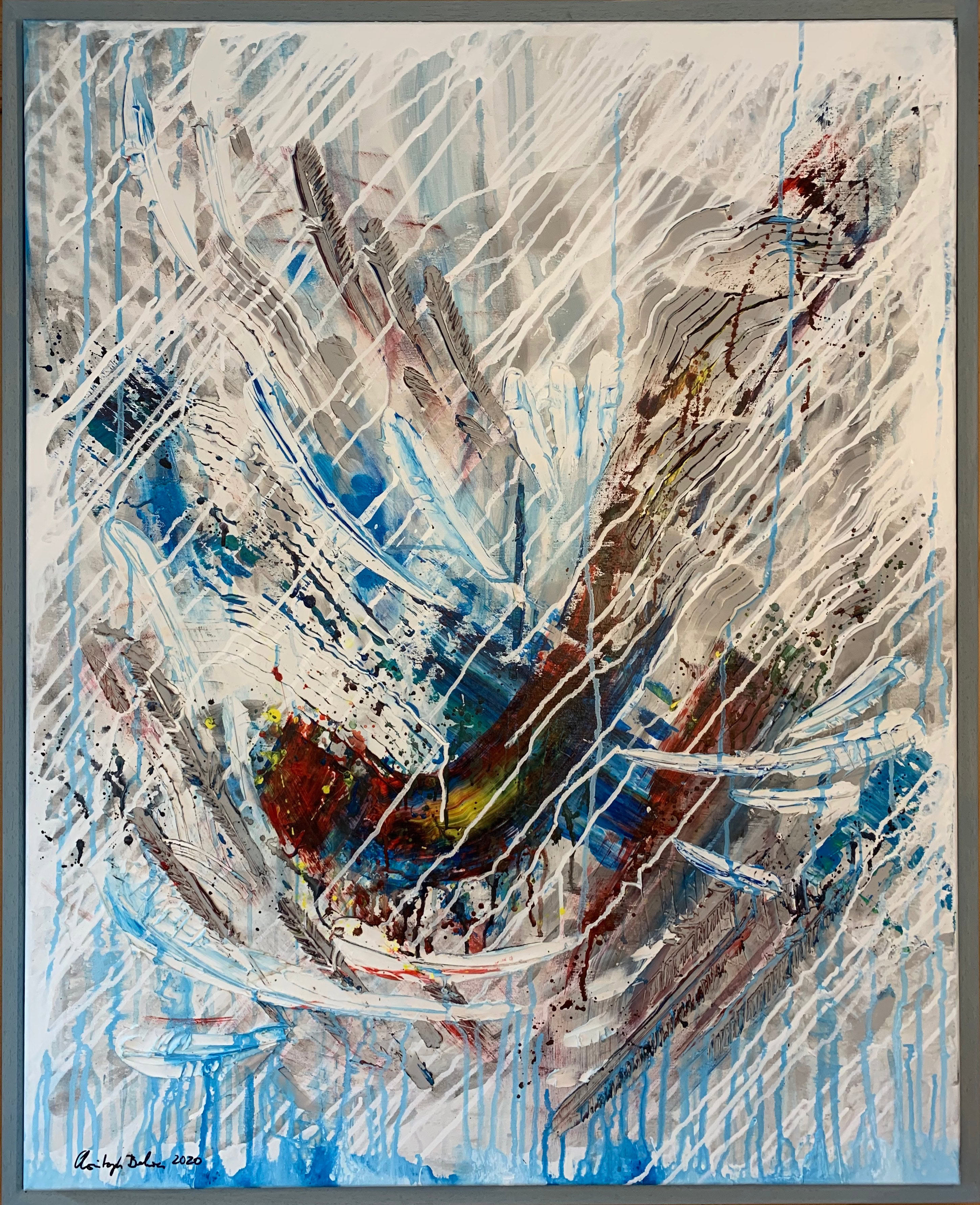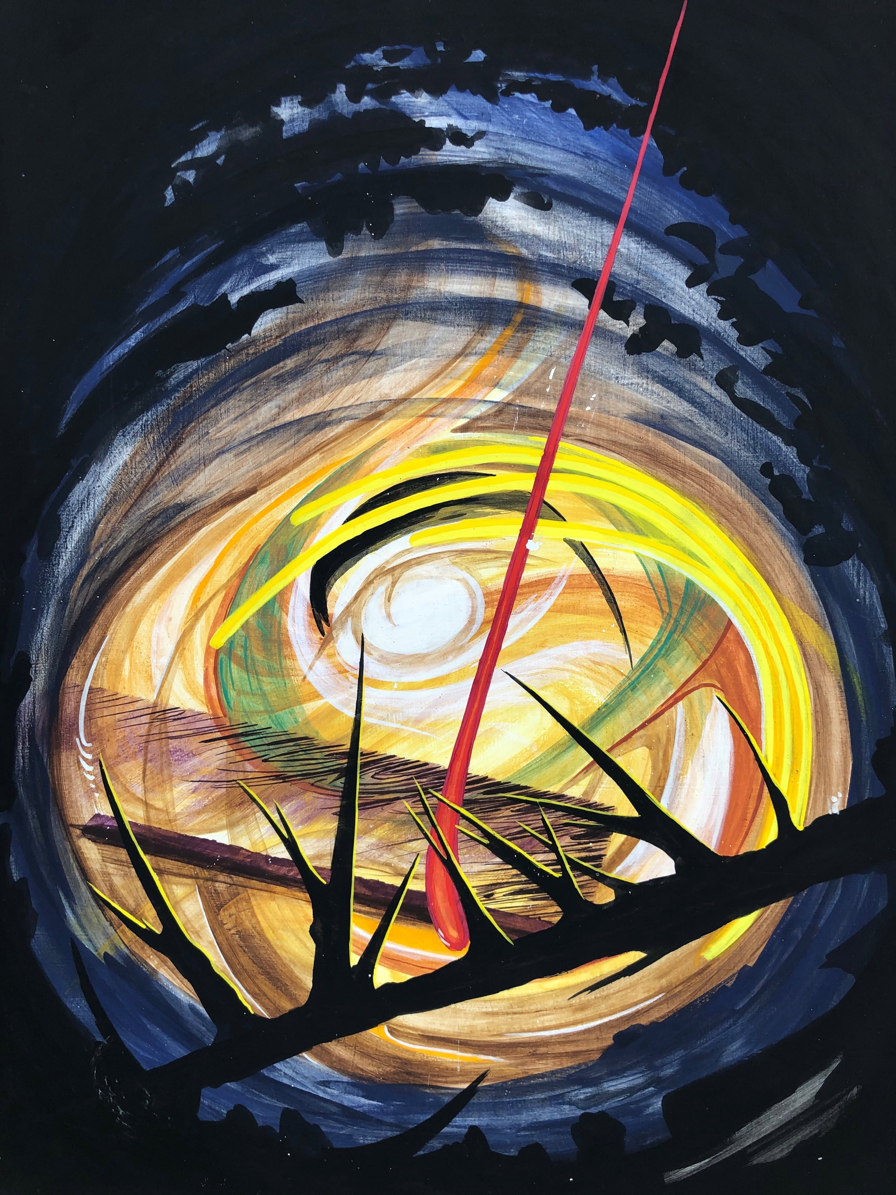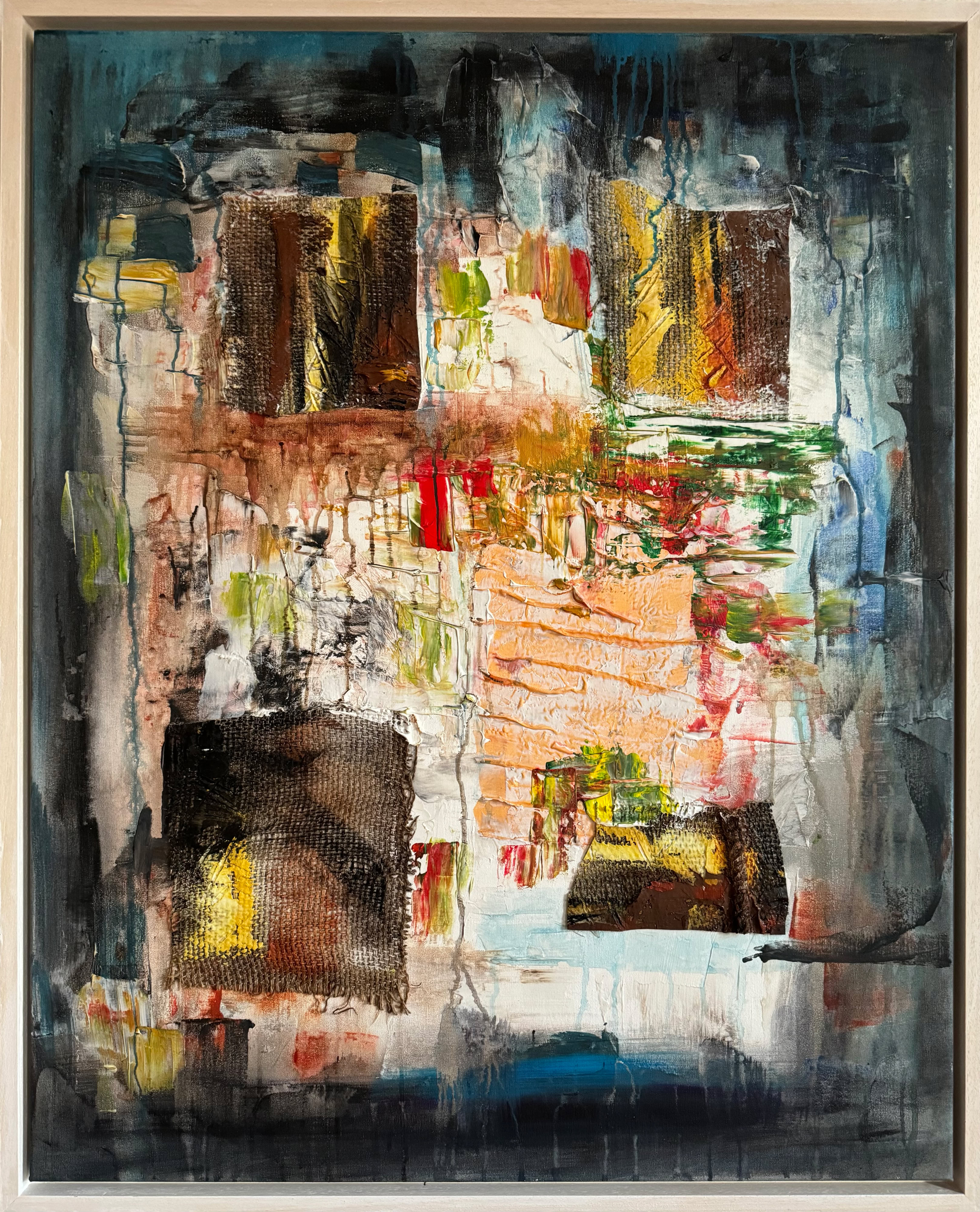 Wood from old Workbench, acrylic, gold, rock crystal,